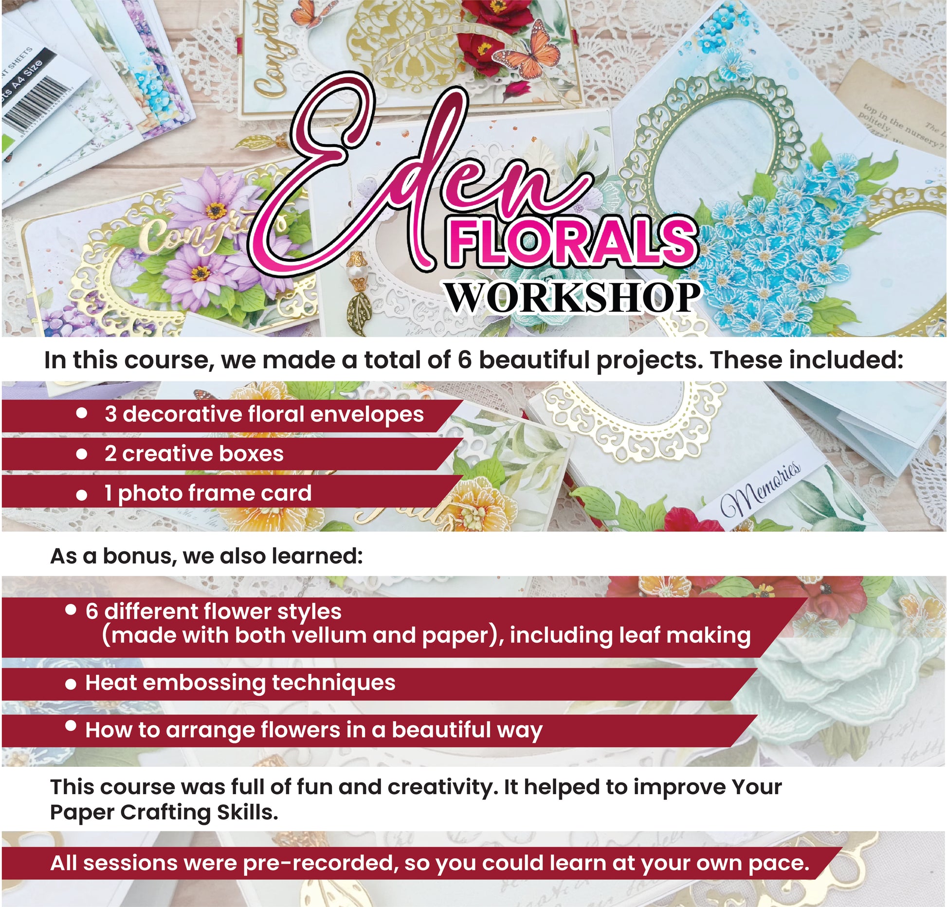 his course was full of fun and creativity. It helped improve my crafting and floral design skills.